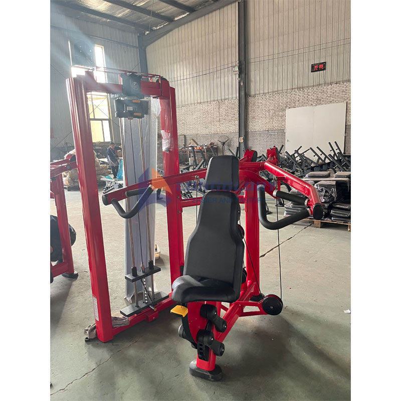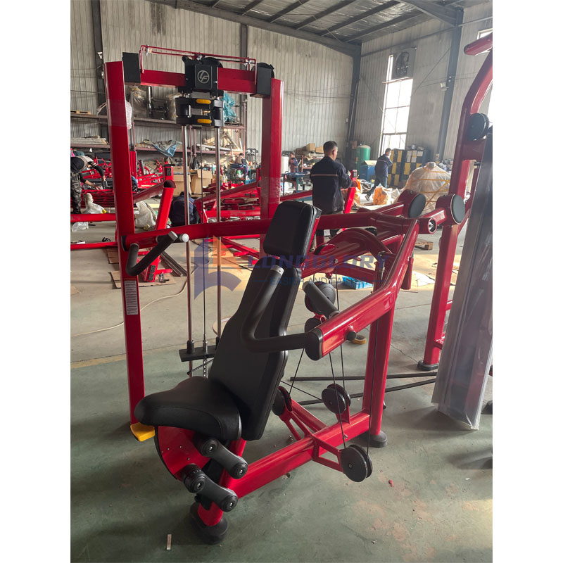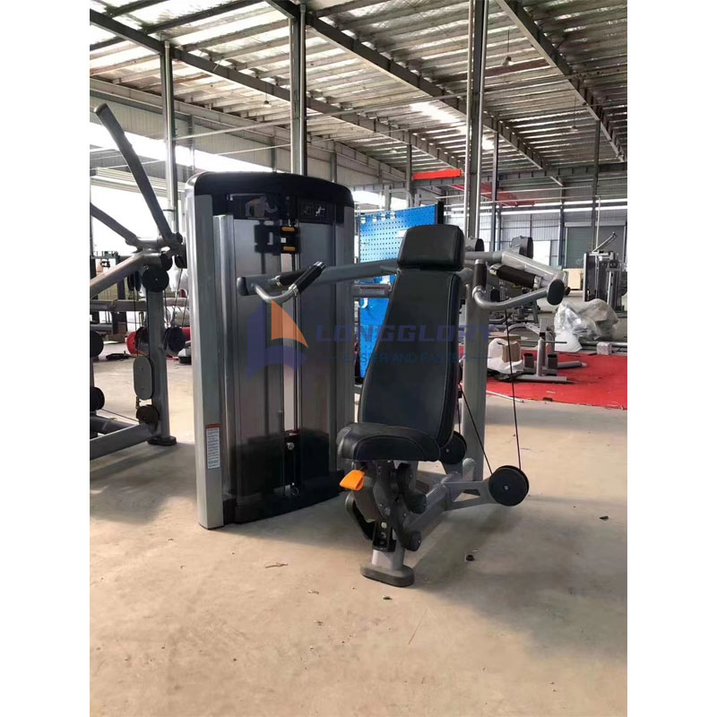 A prensa de ombro convergente carregada com pinos é fácil de usar e manter e é adequada para qualquer pessoa, desde iniciantes até profissionais de fitness avançados. Com resistência ajustável e design ergonômico, é um equipamento versátil que permite ao usuário personalizar seu treino de acordo com seus objetivos de condicionamento físico.