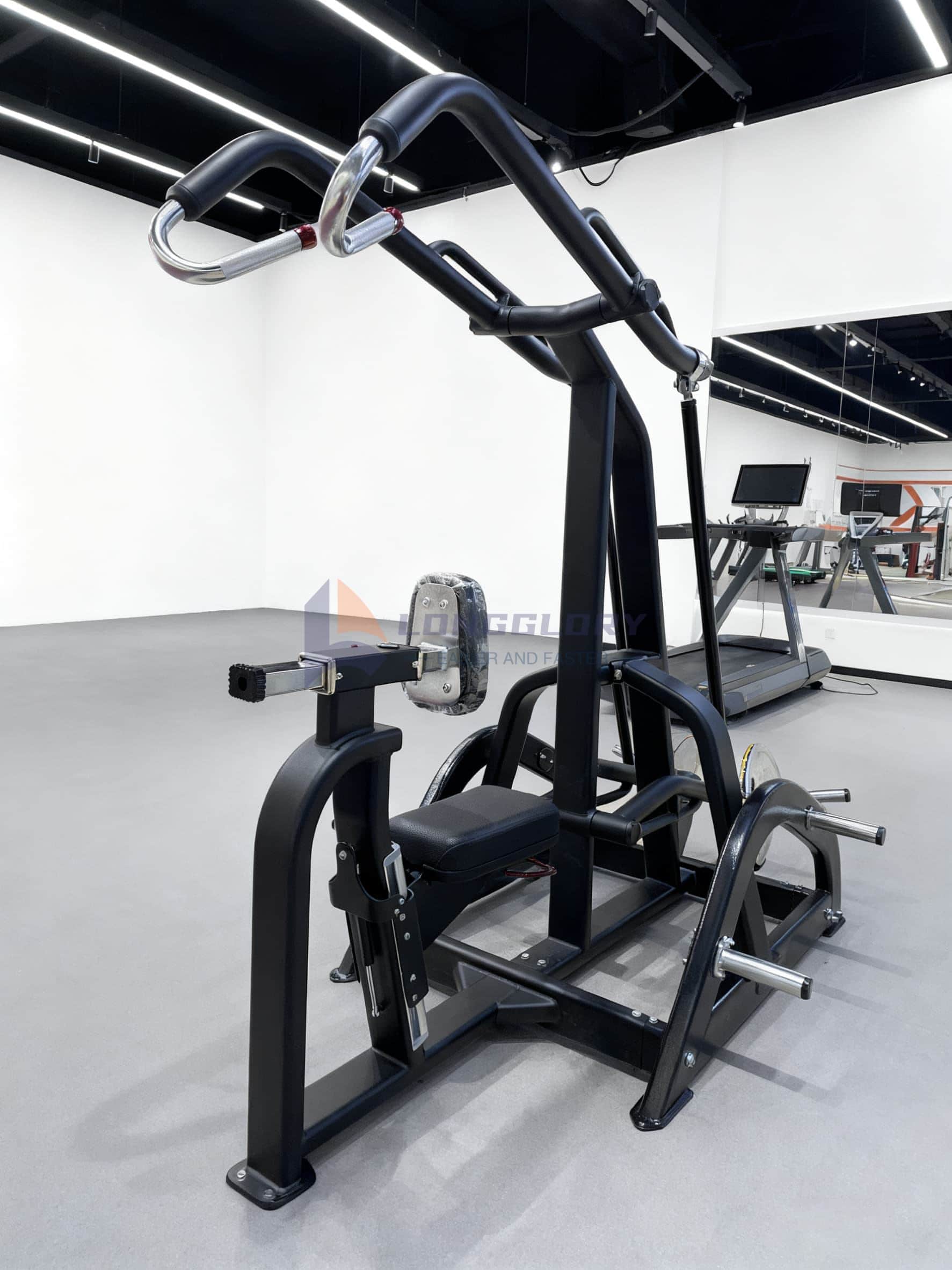 A máquina High Row Lat Pulldown permite aos usuários realizar remadas altas, pulldowns laterais e outros exercícios para a parte superior do corpo que envolvem efetivamente o grande dorsal, trapézio, bíceps e deltóides. Seu assento e apoio para os pés ajustáveis tornam a máquina High Row Lat Pulldown adequada para usuários de diferentes alturas e níveis de condicionamento físico. Perfeita para academias comerciais, academias de ginástica pessoais ou instalações domésticas, a High Row Lat Pulldown Machine oferece uma experiência de treinamento segura, eficiente e confortável.