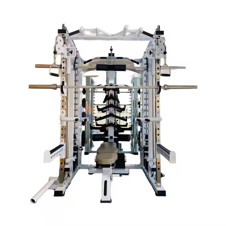 Sejam agachamentos, supinos, prensas de ombro ou linhas, a máquina Smith Multi Function fornece movimento guiado de barra para levantamento mais seguro, tornando -o perfeito para usuários de todos os níveis. O armazenamento de peso integrado e as várias estações de exercícios tornam esta máquina de várias funções uma opção de alta opção para academias comerciais, estúdios de treinamento pessoal e instalações de fitness que buscam equipamentos multifuncionais que entregam resultados.