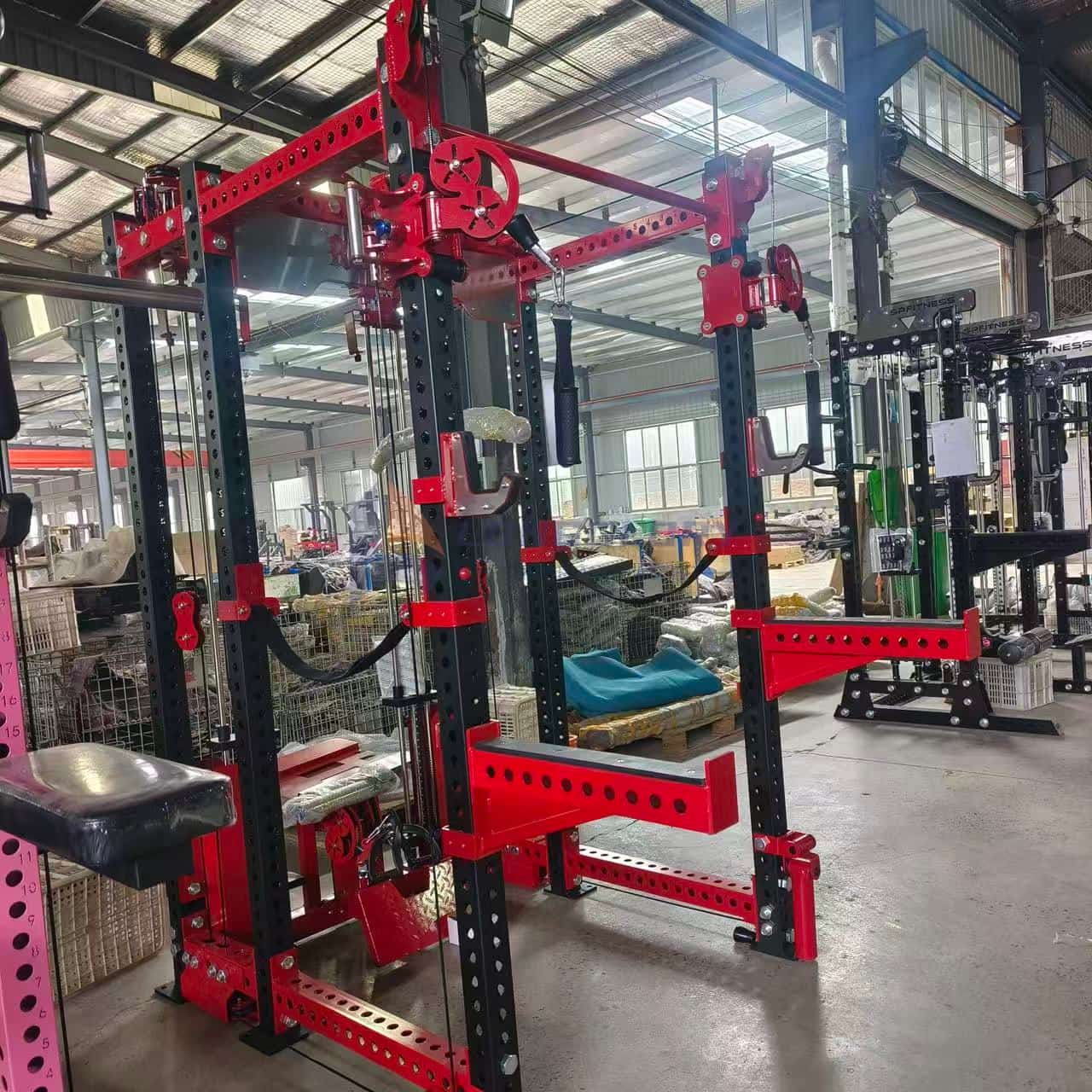 Equipado com polias duplas ajustáveis, este treinador funcional suporta inúmeros padrões de movimento, incluindo peitorais, flexões de tríceps, pulldowns laterais, remadas e propinas de pernas. Suas pilhas duplas de pesos permitem treinamento independente ou sincronizado, adequado para treinos bilaterais e unilaterais. Os braços de cabo ajustáveis em altura acomodam usuários de vários tamanhos e permitem vários ângulos de treinamento de resistência, visando diferentes grupos musculares, incluindo peito, costas, ombros, braços e pernas.