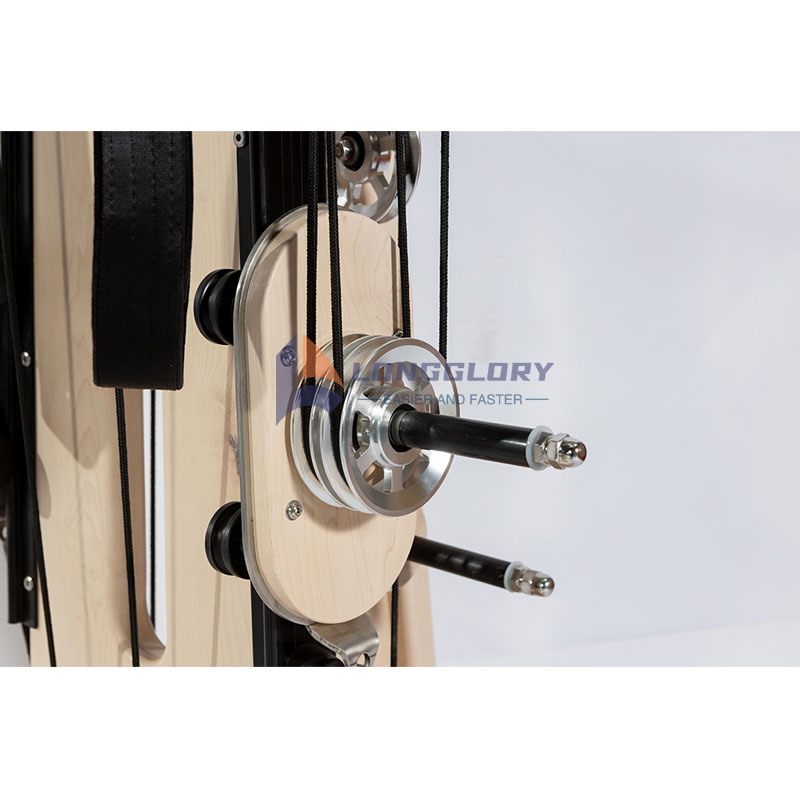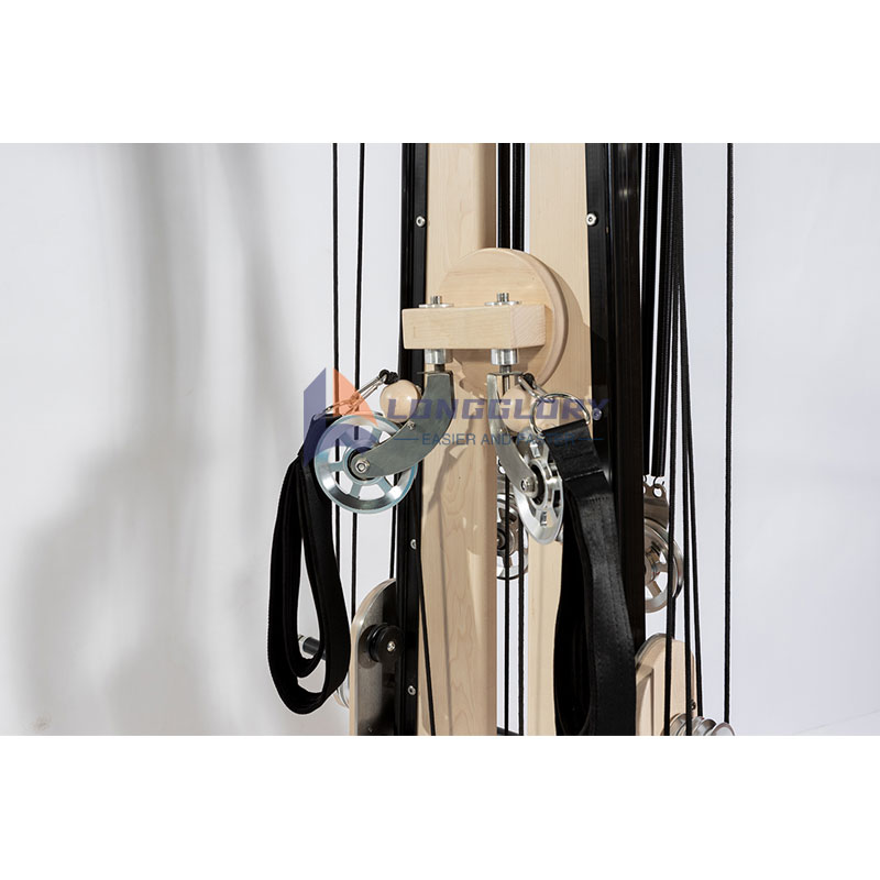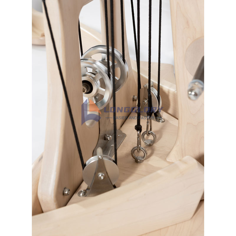 Esta torre de polia de Pilates é feita de madeira de bordo branco de alta qualidade, que é macia, tem uma textura uniforme, granulação bonita e é resistente e durável.