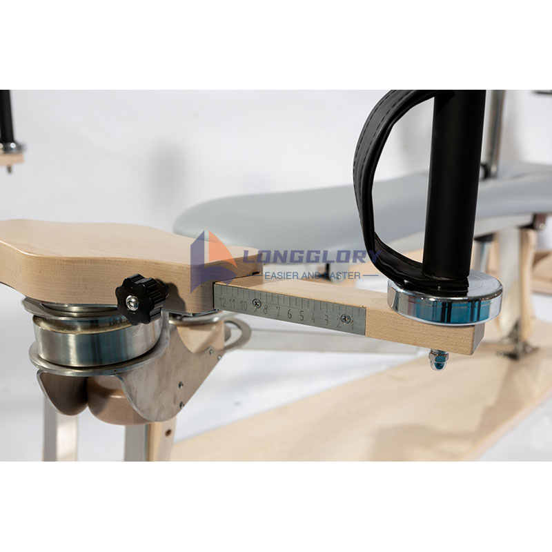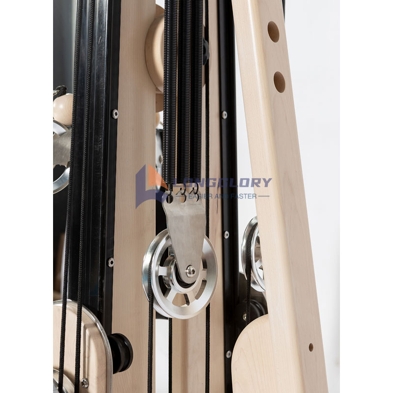 Esta torre de polia de Pilates da LongGlory suporta personalização. Você pode mudar seu material para faia ou carvalho, ou imprimir seu padrão favorito ou mudar sua cor.